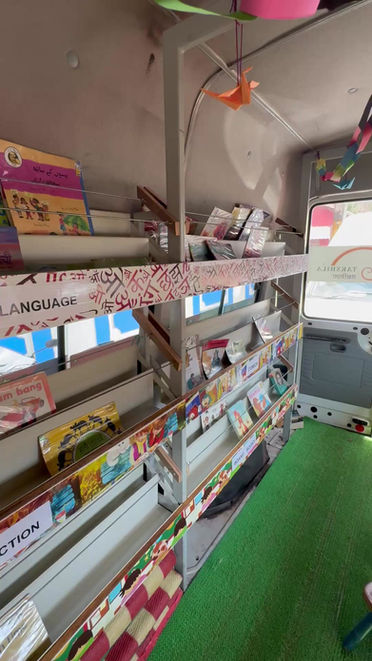 Retrofitting a tata winger into a mobile library that houses storybooks and craft materials.